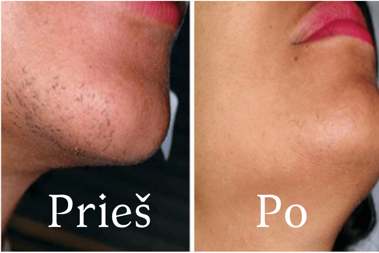 Elektroepiliacijos būdu galima pašalinti net ir šviesius plaukus. Plaukeliai pašalinami visam laikui.