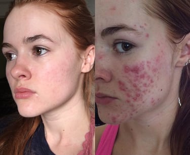 Nuotrauka (po/prieš gydymą Roaccutane vaistu) paimta iš Instagram anketos - myfacestory